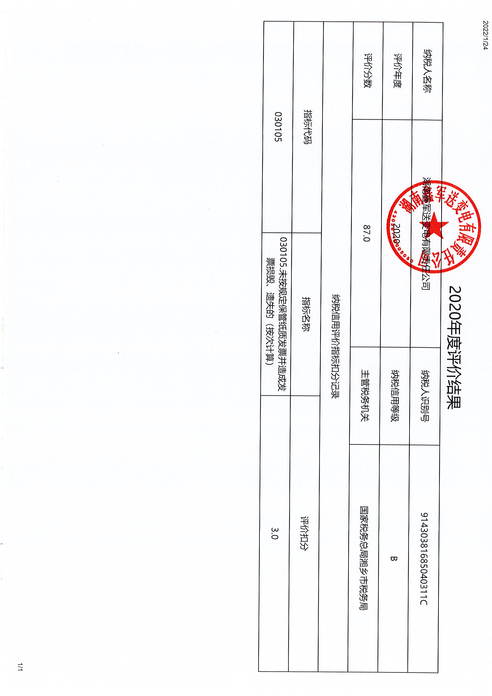 企業(yè)納稅信用等級報告: