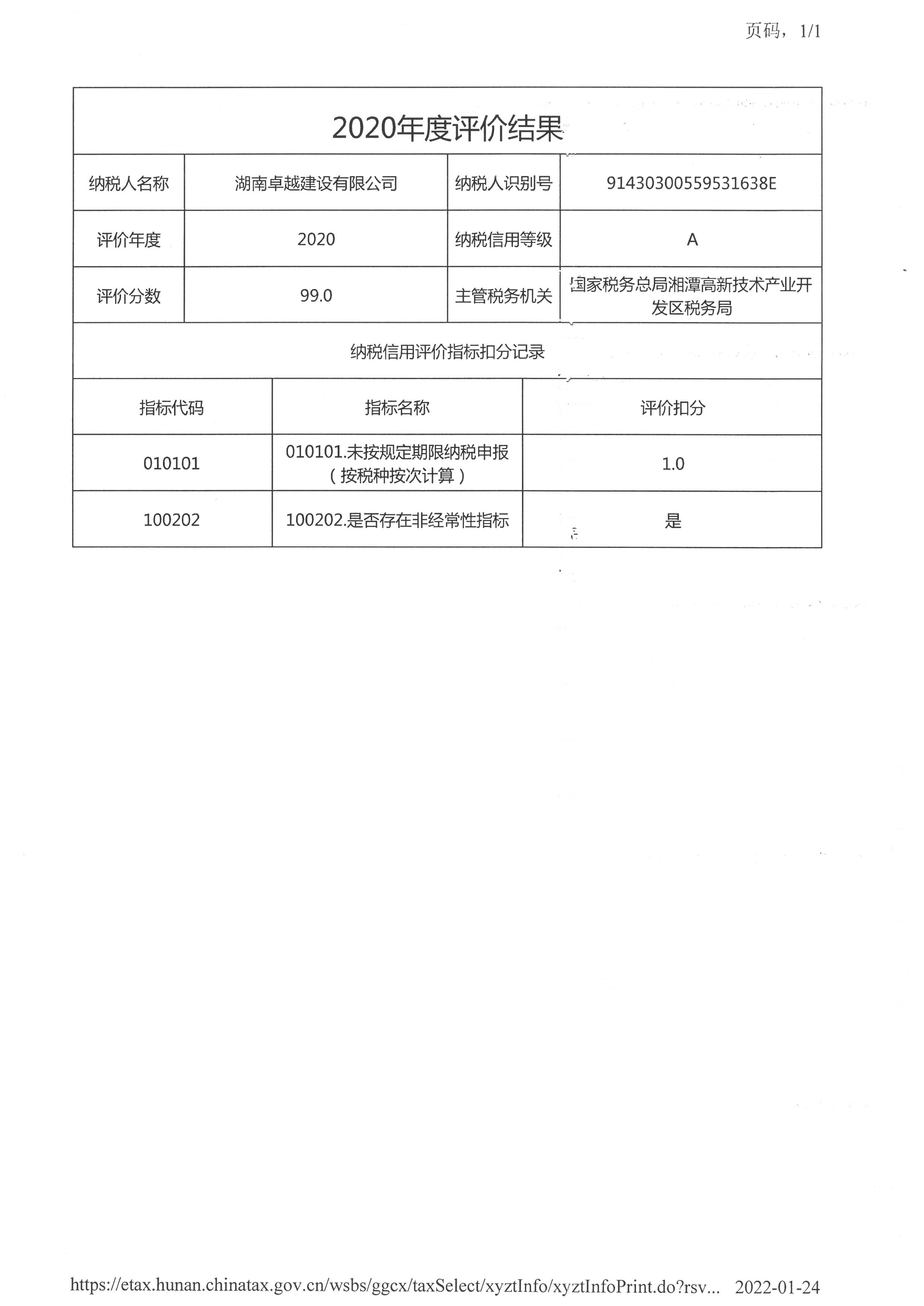 企業(yè)納稅信用等級報告: