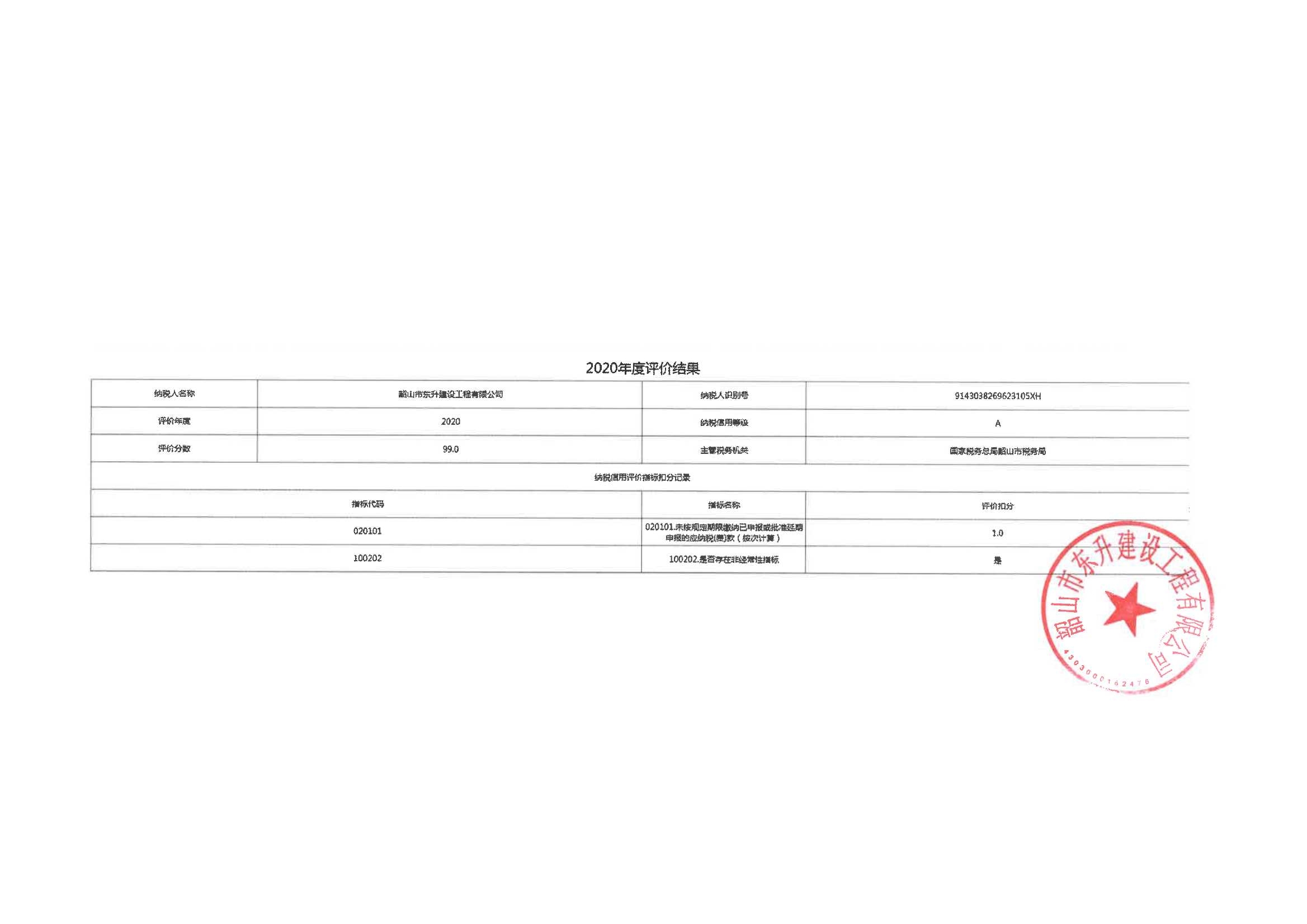 企業(yè)納稅信用等級報告: