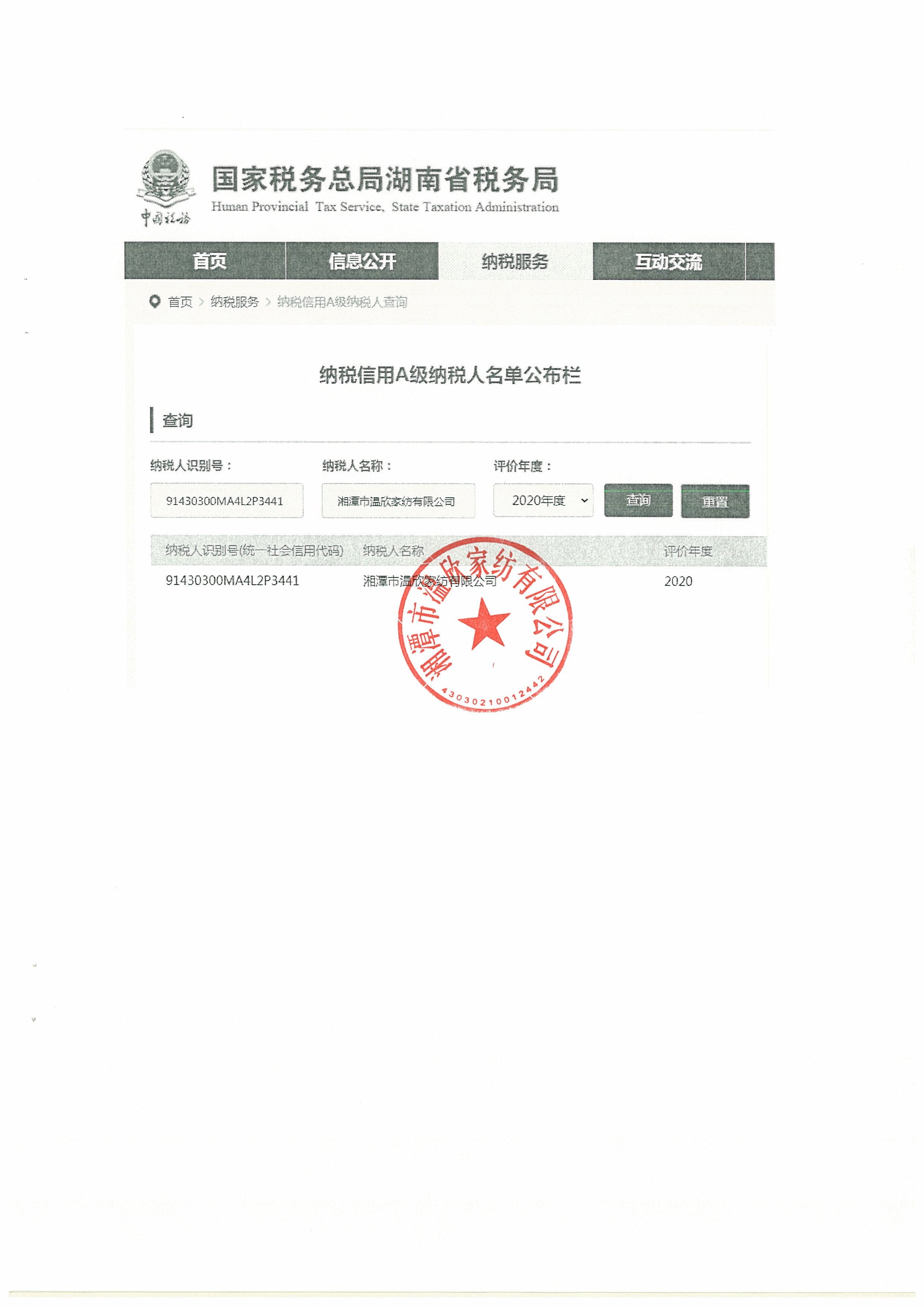 企業(yè)納稅信用等級報(bào)告: